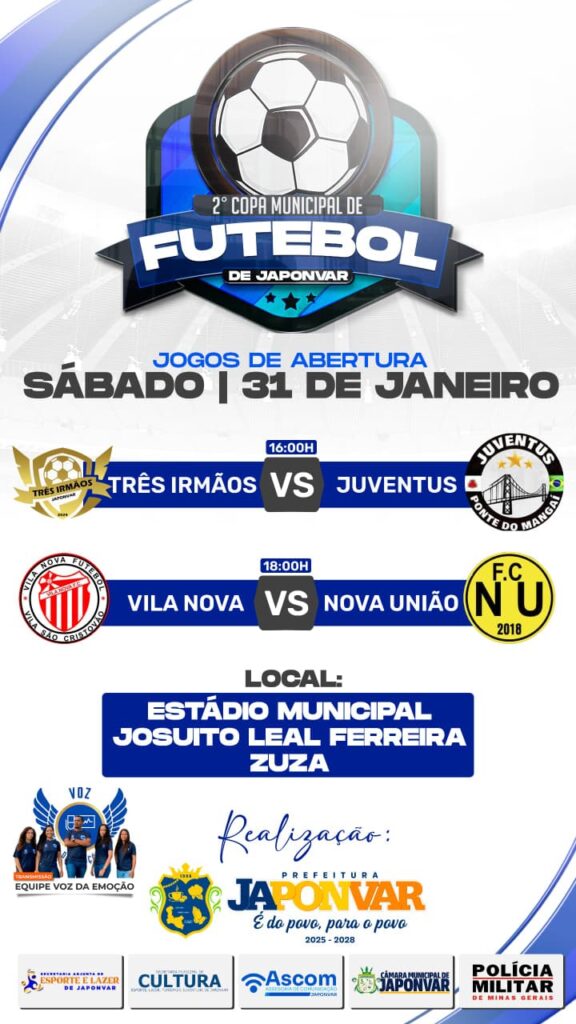 O futebol vai tomar conta de Japonvar! No dia 31 de janeiro, acontecem os jogos de abertura da 2ª Copa Municipal de Futebol, uma competição que promete emoção, rivalidade saudável e muita paixão pelo esporte.