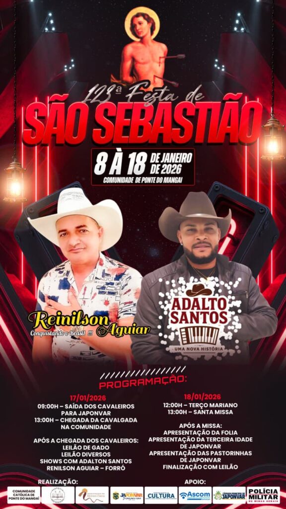 De 15 a 25 de janeiro de 2026, a comunidade de Nova Minda, em Japonvar, vive dias de fé, tradição e muita alegria com a 17ª Festa de São Sebastião, um dos eventos religiosos e culturais mais importantes da região.