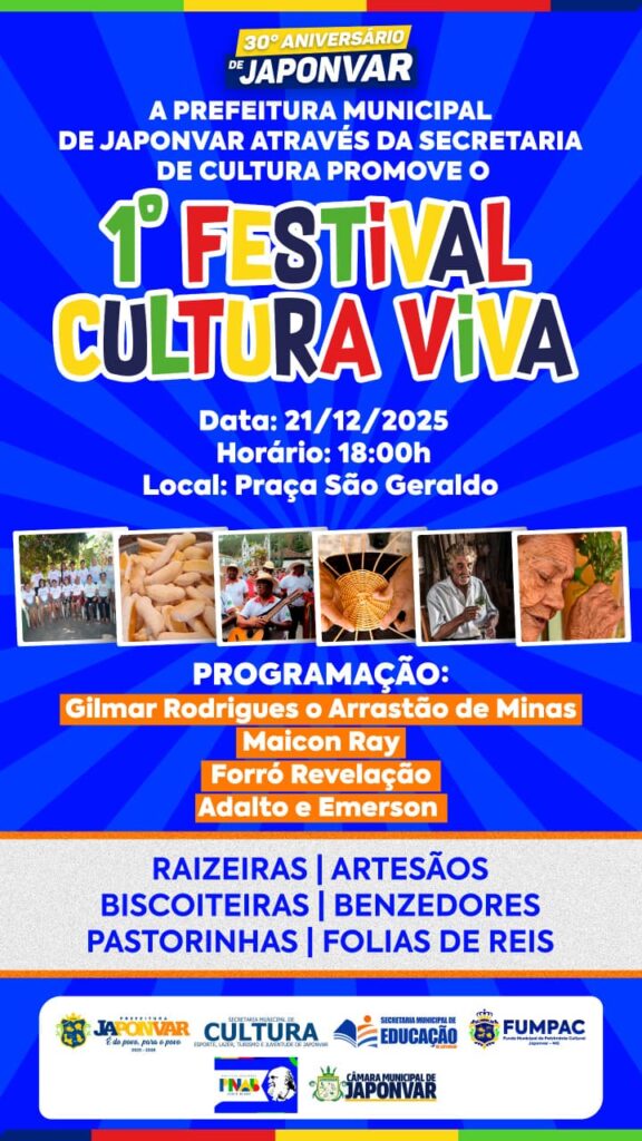 O Festival Cultural de Japonvar já se consolidou, como uma importante ação de fortalecimento da cultura local, proporcionando às novas gerações o contato com costumes, saberes e expressões que marcam a identidade do município.
